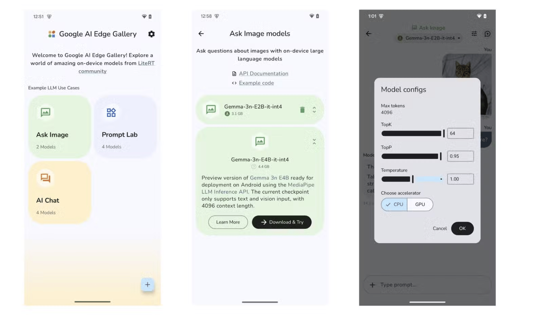 How it works: Download AI Edge Gallery from the App Store or Google Play, open it, tap AI Chat and download a model. Gemma 4 E2B is around 2.5 GB. Once downloaded, everything runs locally.