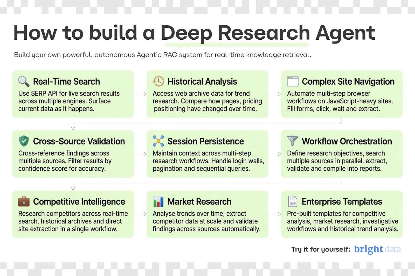 It's the full stack for building research agents that actually work at scale. Bright Data have an excellent free guide, give it a try.