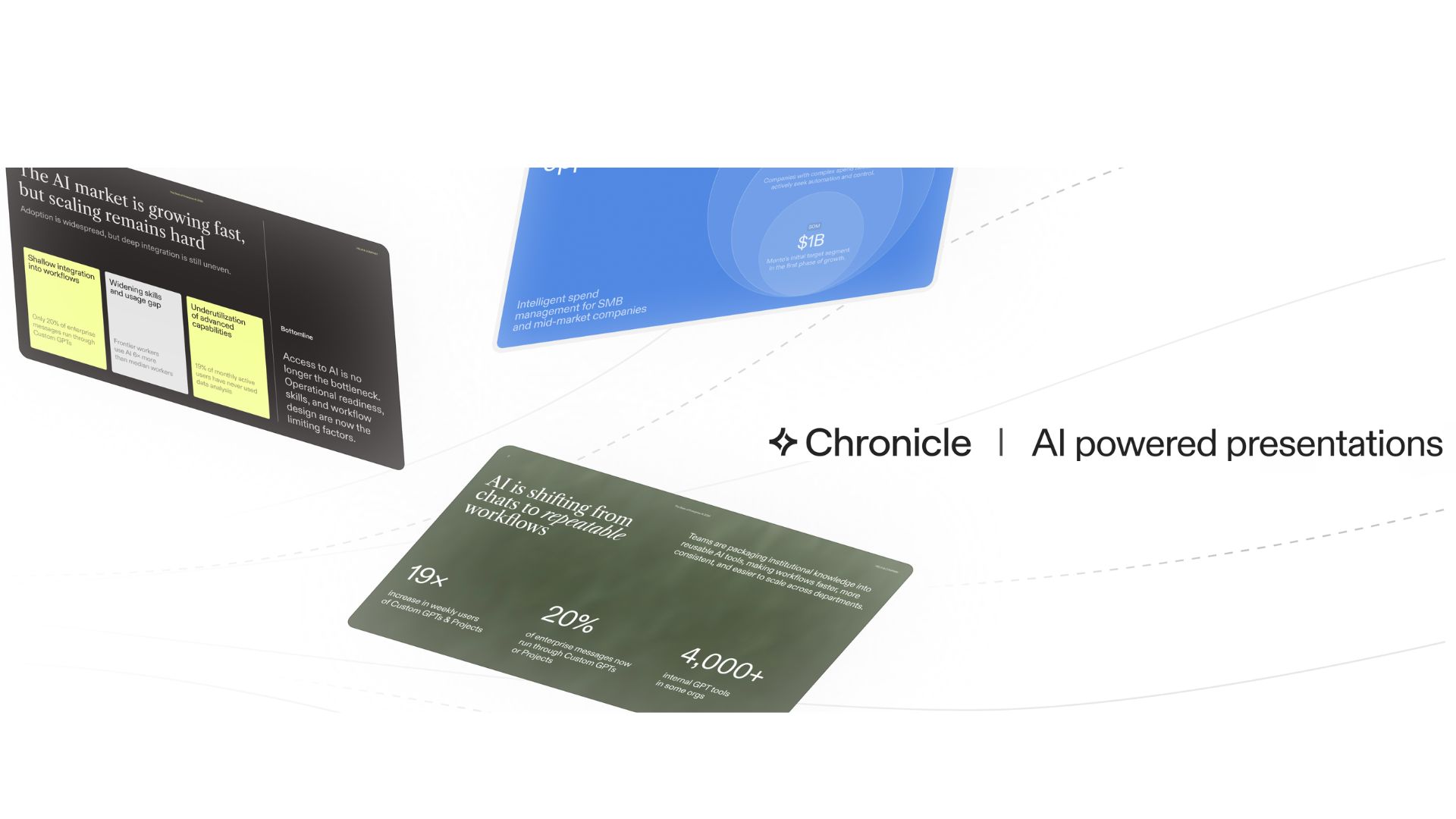 Drop rough notes or an outline onto a flexible canvas. Chronicle turns that structure into a clear visual presentation.