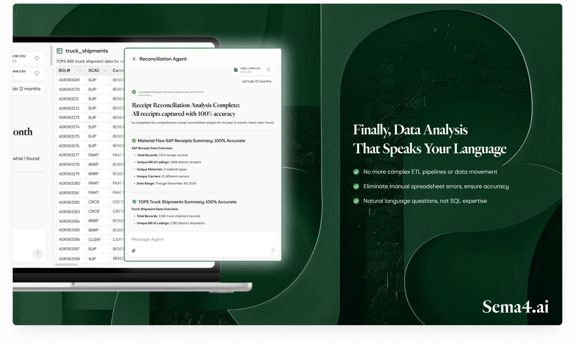 Data from different teams, different formats, and missing notes on how anything works, that’s a real pain. Sema4.ai/DataFrames are built for that mess.