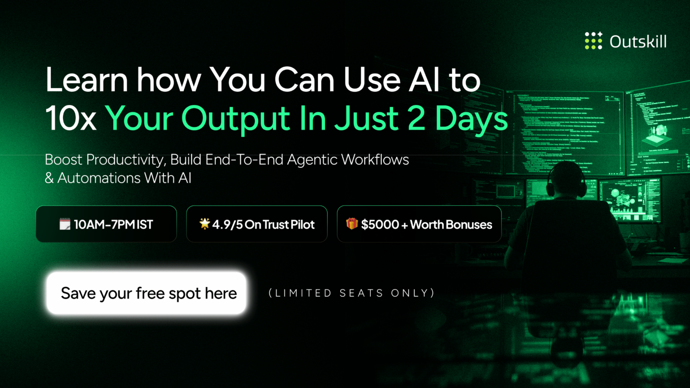 Most people try to keep up with AI by consuming more content. Outskill flips it: one weekend, 16 live hours, and you leave with workflows and automations you can actually run on Monday.