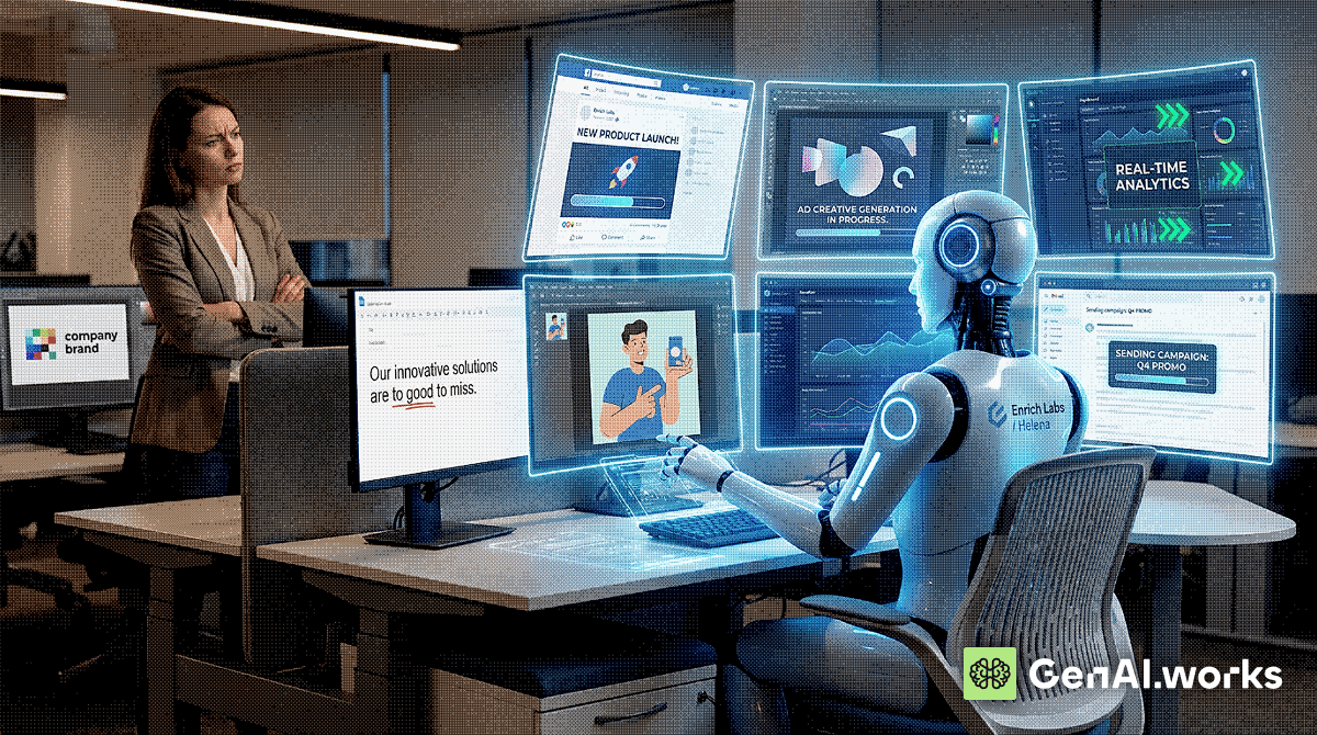 Enrich Labs released Helena, an autonomous marketing agent that takes a company URL, researches its positioning and competitors, generates creative assets and posts them online. The launch video has racked up over 3 million views and the startup claims every marketer who has demoed it has requested early access.