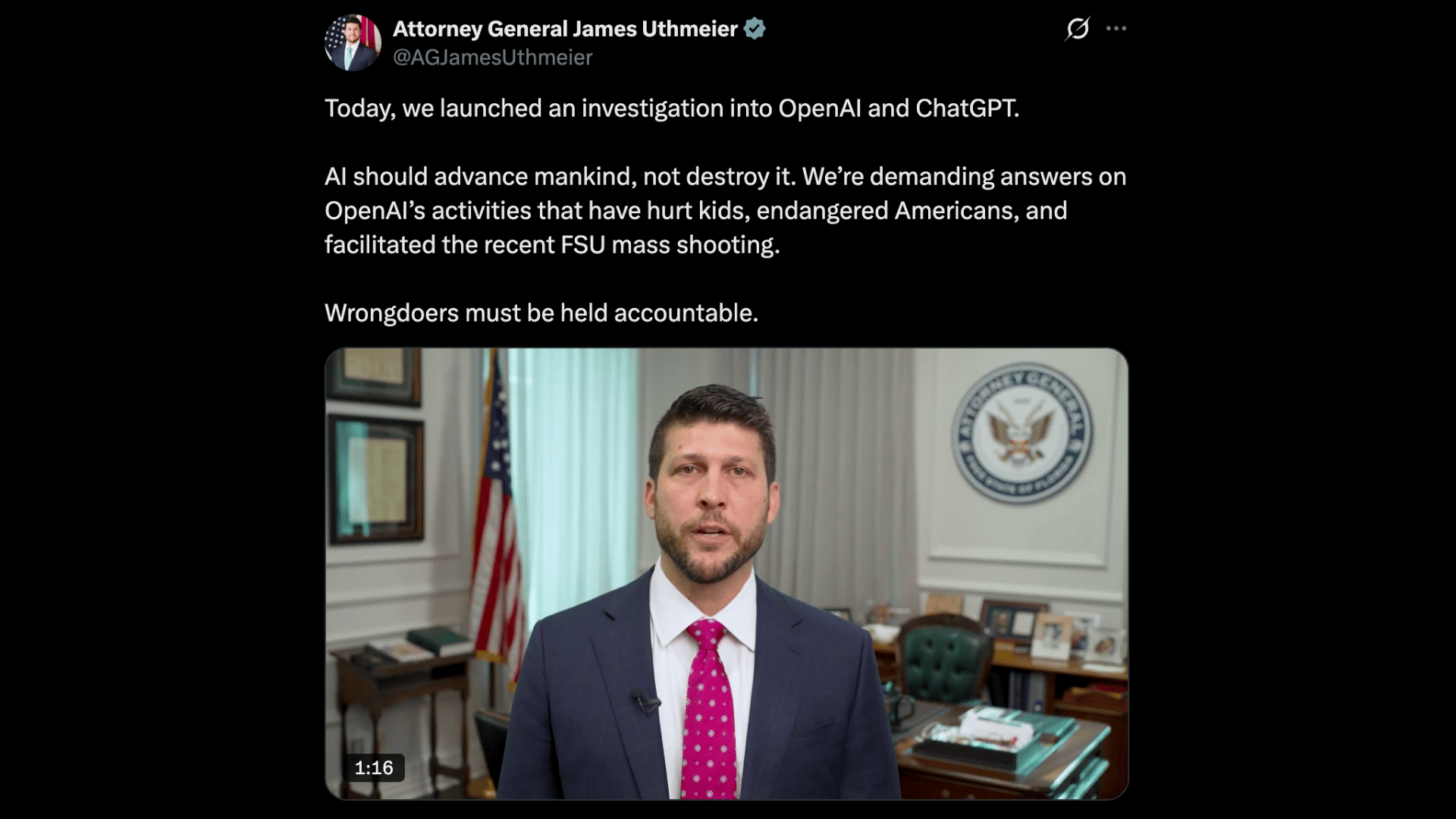 Florida vs OpenAI: Did ChatGPT help plan a campus shooting? A state attorney general wants answers.