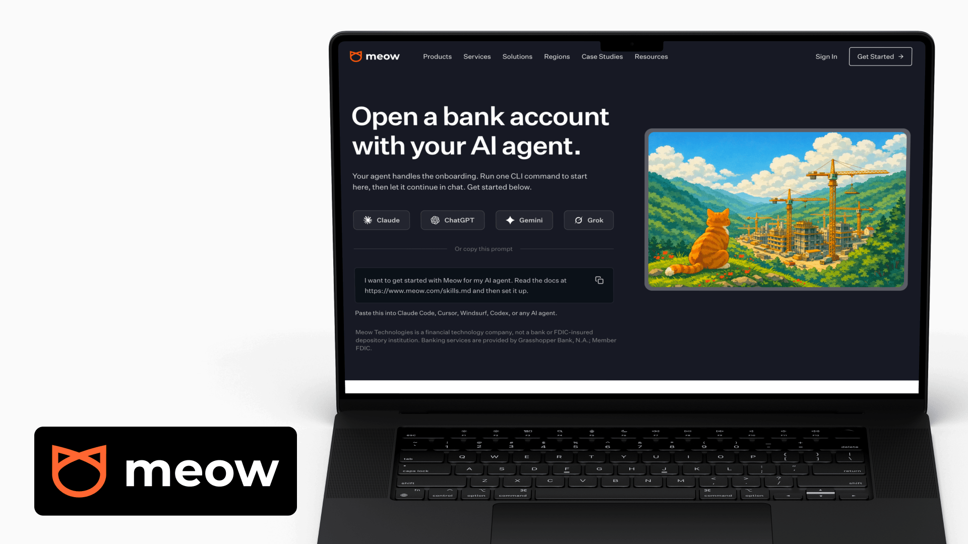 Meow is infrastructure that lets AI agents open bank accounts, issue payment cards and manage money. If you are building agents that need to transact, Meow provides the financial rails.